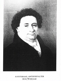 Nys afdøde Justitsråd og Amtsforvalter Jens Worsaae var født den 16. juli 1780. Som ungt menneske kom han i huset hos sognepræsten, hr. Jens Asmussen i Albæk i Vendsyssel, der tidligt opdagede hans gode anlæg. Han blev demitteret af denne til universitetet og tog juridisk attestats i april 1803. I Året 1808 blev han Kopist og i 1811 Fuldmægtig i Rentekammeret. 1813 udnævntes han til amtsforvalter i Vejle amt og 1. august 1829 til virkelig Justitsråd. Han var tillige 25 år Forligscommisær og en rum tid medlem af Havnekommisionen og medbestyrer af Sparekassen i Vejle. Justitsråd Jens Worsaae døde i Vejle den 29. marts 1840.